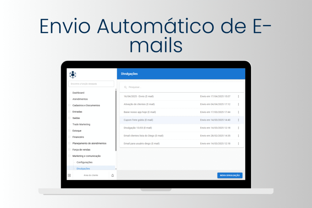 Com o recurso de Divulgação Automática, sua empresa ganha agilidade na comunicação com clientes e praticidade para criar promoções, cupons de desconto e campanhas de marketing.